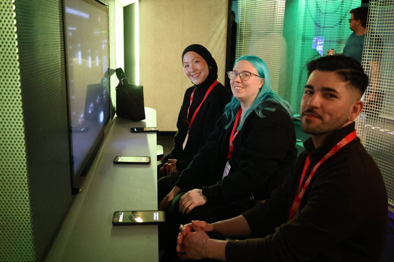 Foto på Folkets Hjørne: Aleyna Sakrak, Therese Andersson og Bashir Mohammadi fra LIVS, Sverige.